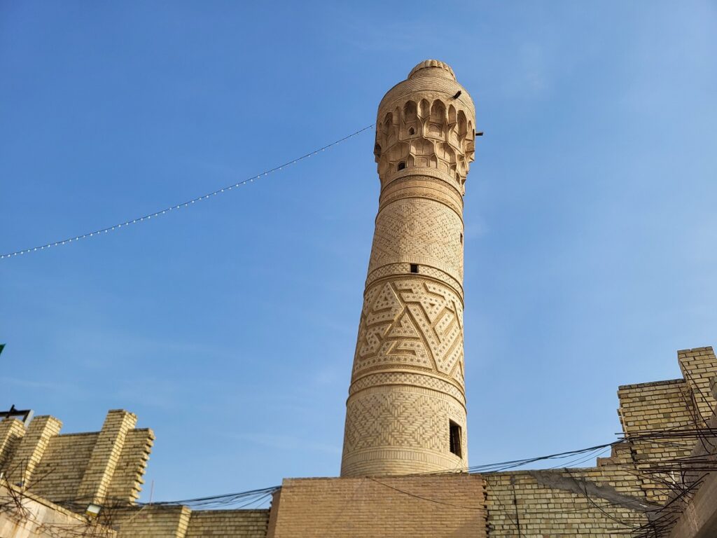 墓地旁邊還有座略微傾斜的磚造宣禮塔,一般認為建於14世紀左右。這表明當時這個墓地已經被納入伊斯蘭清真寺建築群之中。