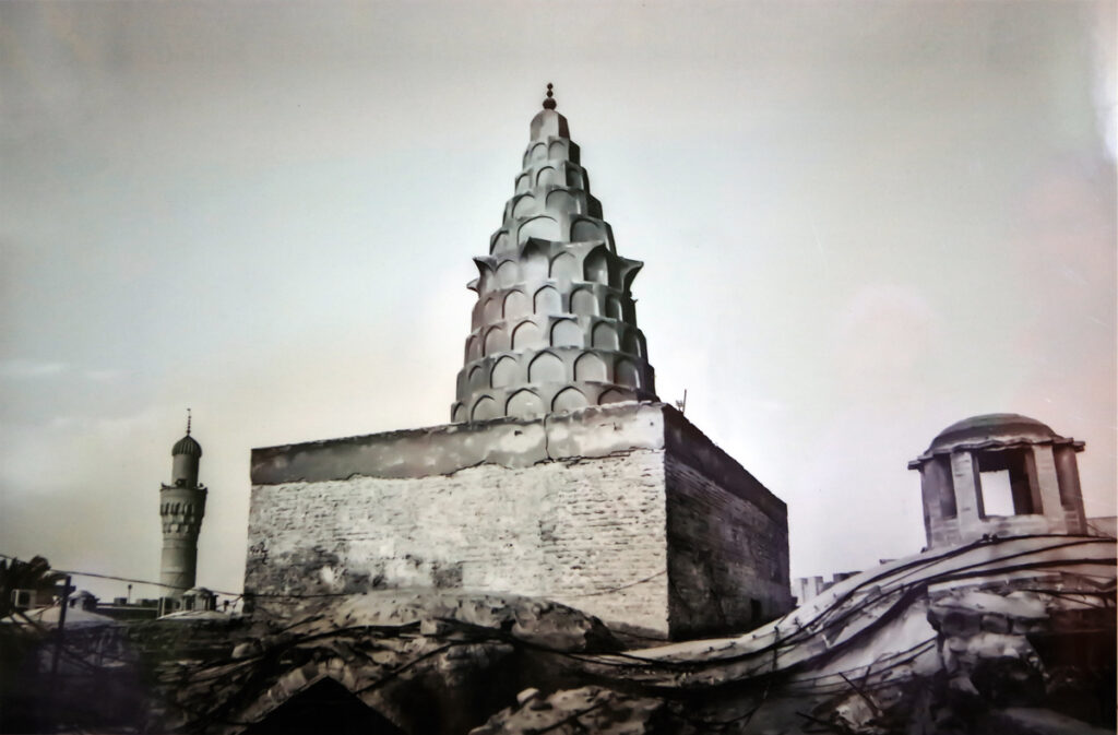 墓地最顯著的特徵是一座高聳的圓錐形磚塔。這種階梯式圓錐塔是中世紀伊拉克聖墓建築的典型形式,特別常見於阿拔斯王朝(Abbasid Dynasty;750–1258年)晚期,以及蒙古帝國四大汗國之一的伊兒汗國(Ilkhanate;1256–1355年)時期。
