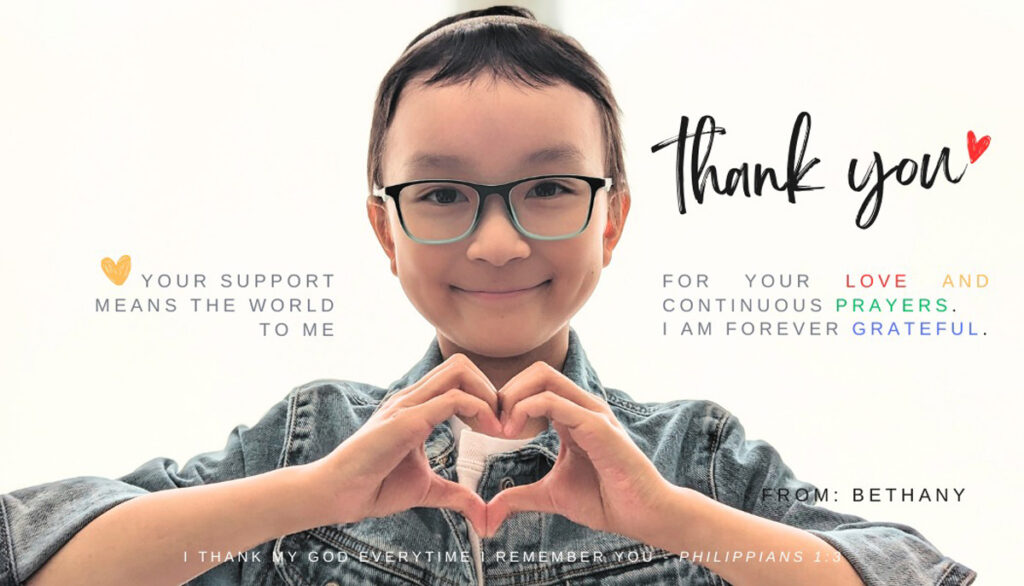 Bethany治療期間的積極心態也深深鼓舞父母。他問女兒是否相信神會救她,她回答:「相信。」這份信心成為一家人的力量。